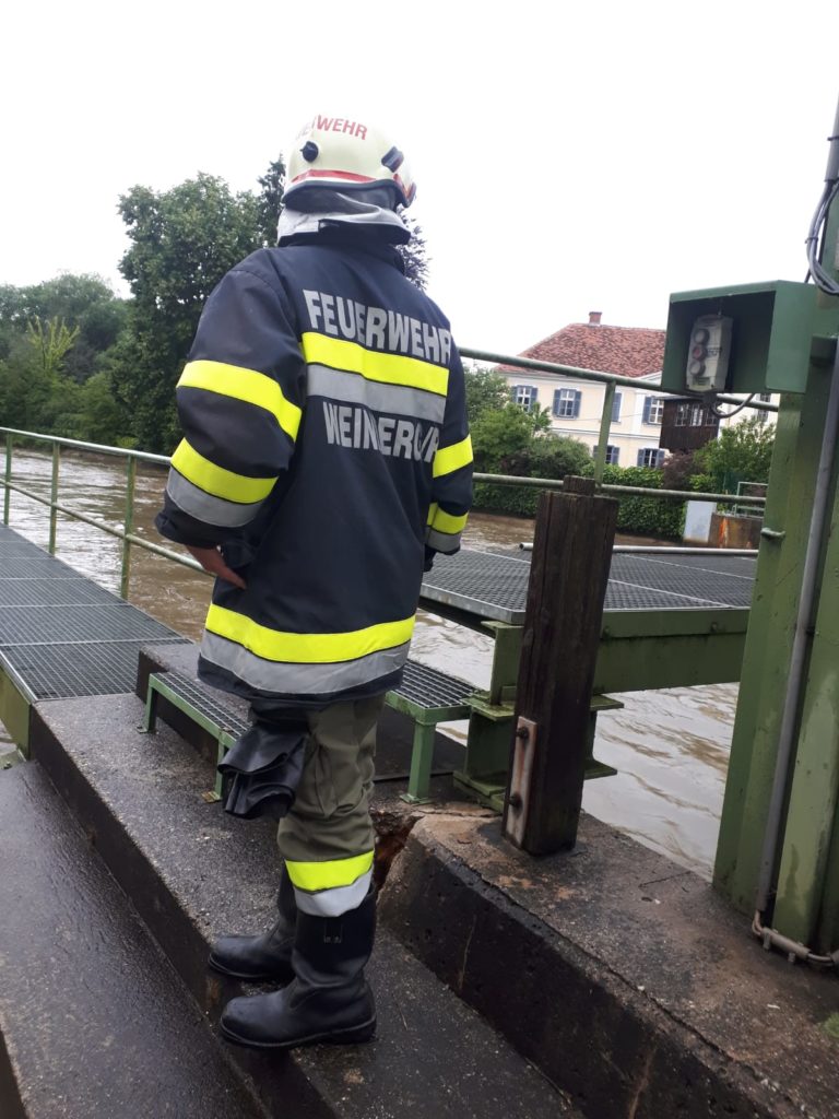 Der Einsatzbefehl lautete: Den Pegelstand der Raab an der “Wagnermühle” kontrollieren und der Florianstation durchgeben. Auch angrenzende Objekte müssen dementsprechend geschützt werden.