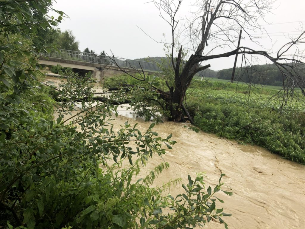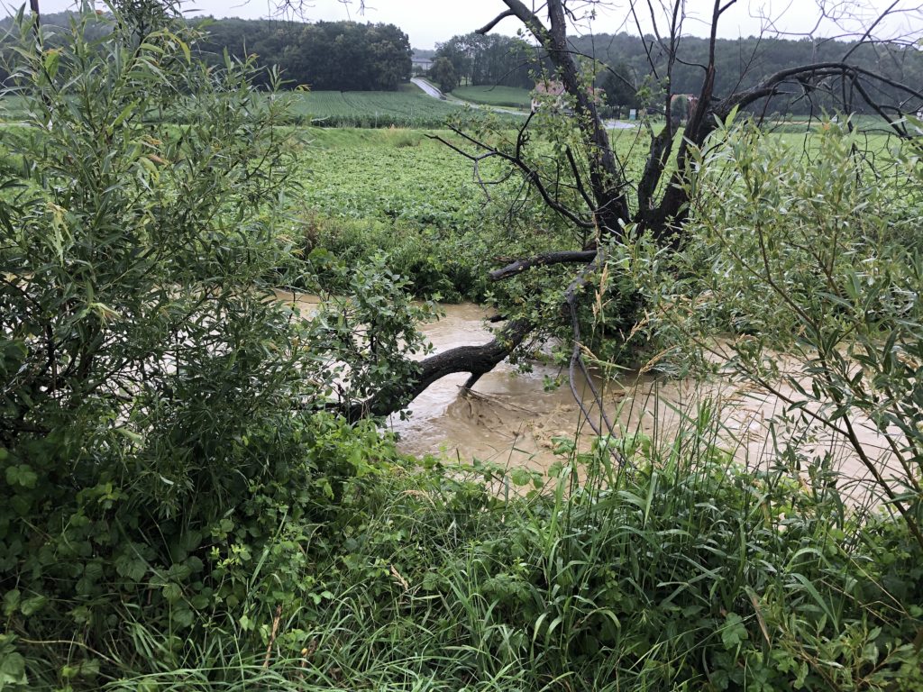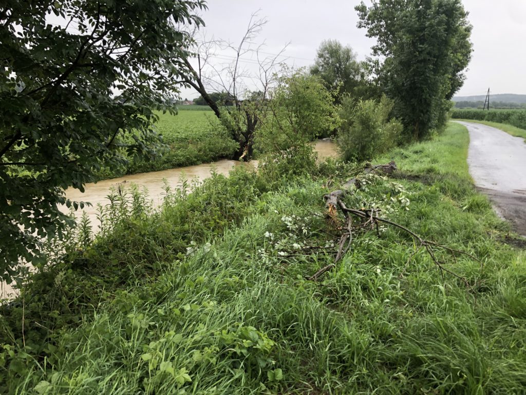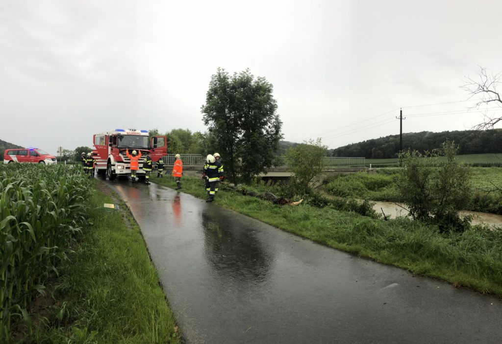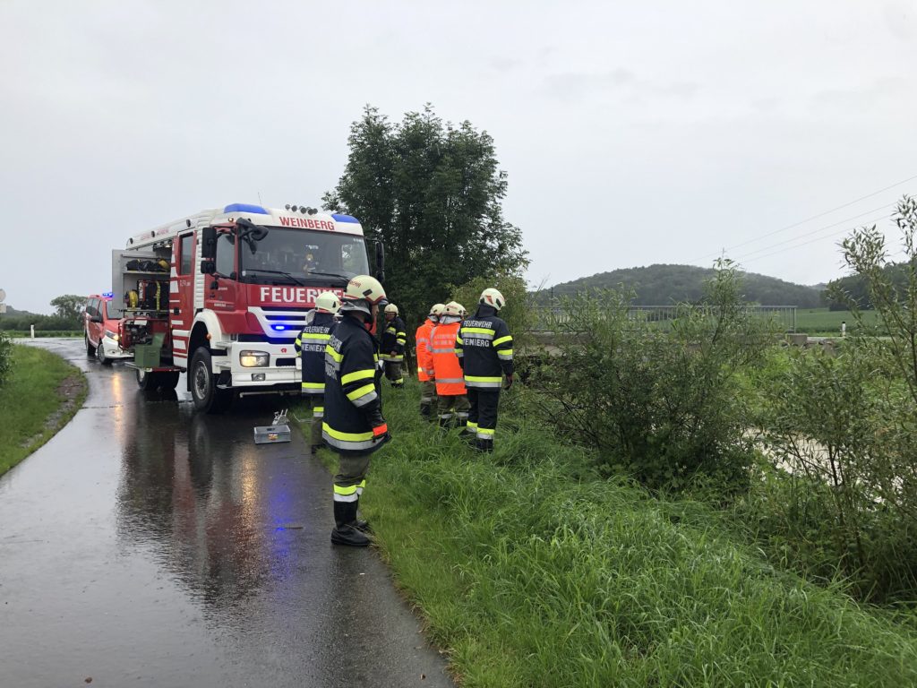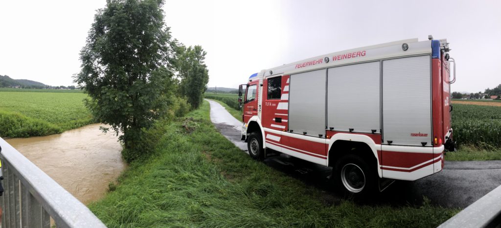 Die durch das Unwetter beschädigten Bäume stellten eine Gefahr der Verklausung dar. Diese Gefahr konnte von der Freiwilligen Feuerwehr Weinberg erfolgreich entfernt werden.